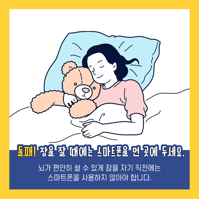 둘째, 잠을 잘 때에는 스마트폰을 먼 곳에 두세요.