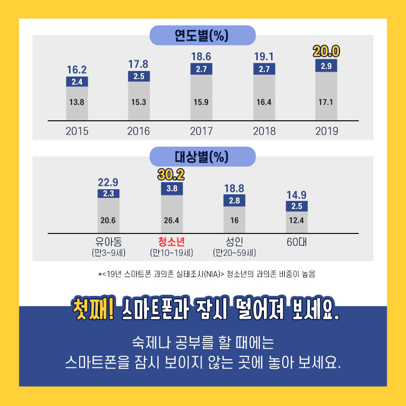 19년 스마트폰 과의존 실태조사(NIA)에 따르면
