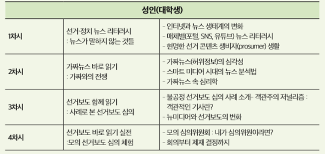 [표3] 성인 대상 선거‧정치 미디어 리터러시 교육