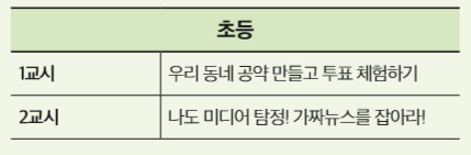 [표1] 초등학생 대상 선거‧정치 미디어 리터러시 교육