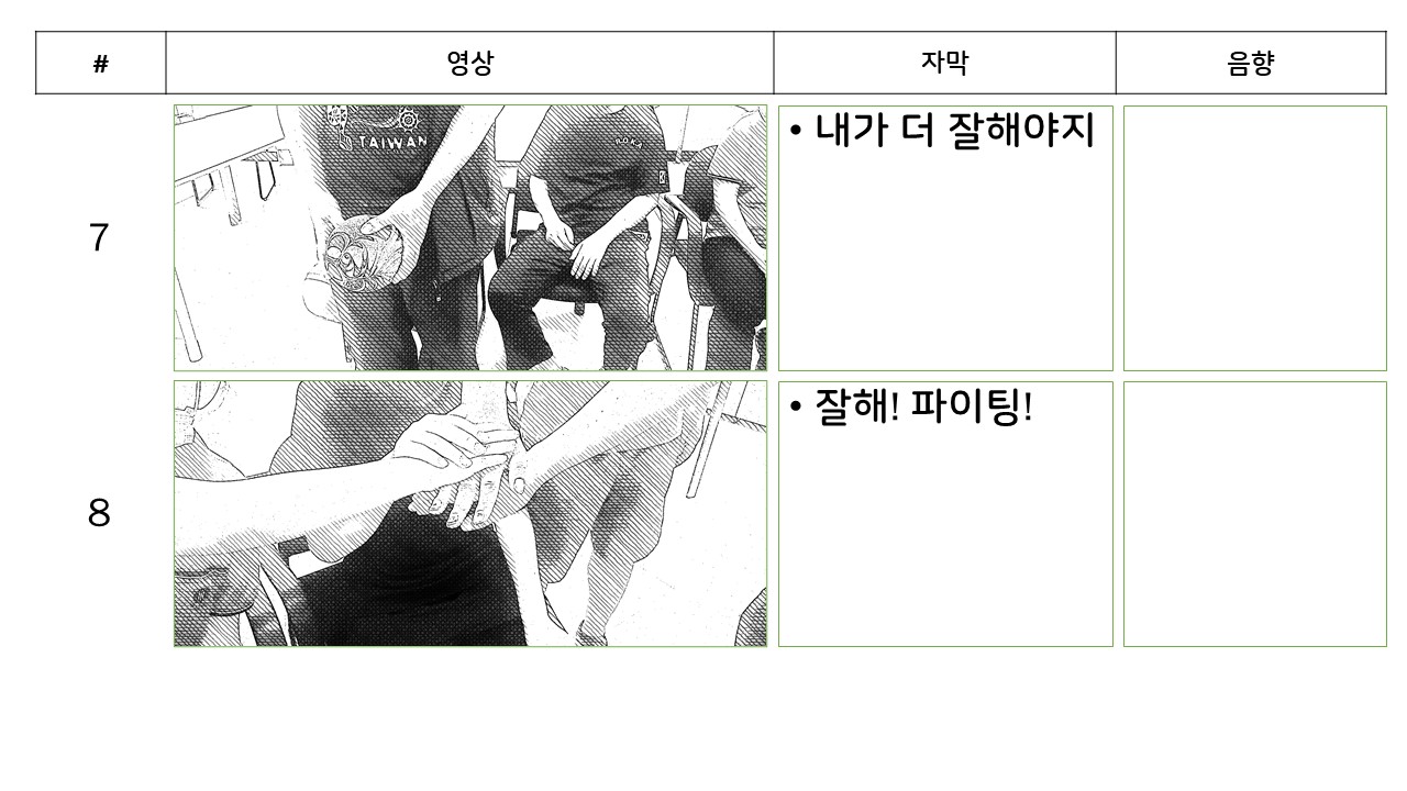 ‘스토리보드를 어떤 방식으로 만들까’ 고민하다가 실전 연습 장면을 찍어 바로 스토리보드로 활용해 보기로 결정했다. 한편으로는 연습 촬영과 스토리보드 제작이 과연 실시간으로 진행될 수 있을지 걱정이 앞섰다. 즉석에서 촬영 화면에 자막을 달면 교육생들의 생생한 반응을 볼 수도 있고 효과도 극대화될 것 같았지만, 기관의 협조 등 제반 여건도 미지수였다.
