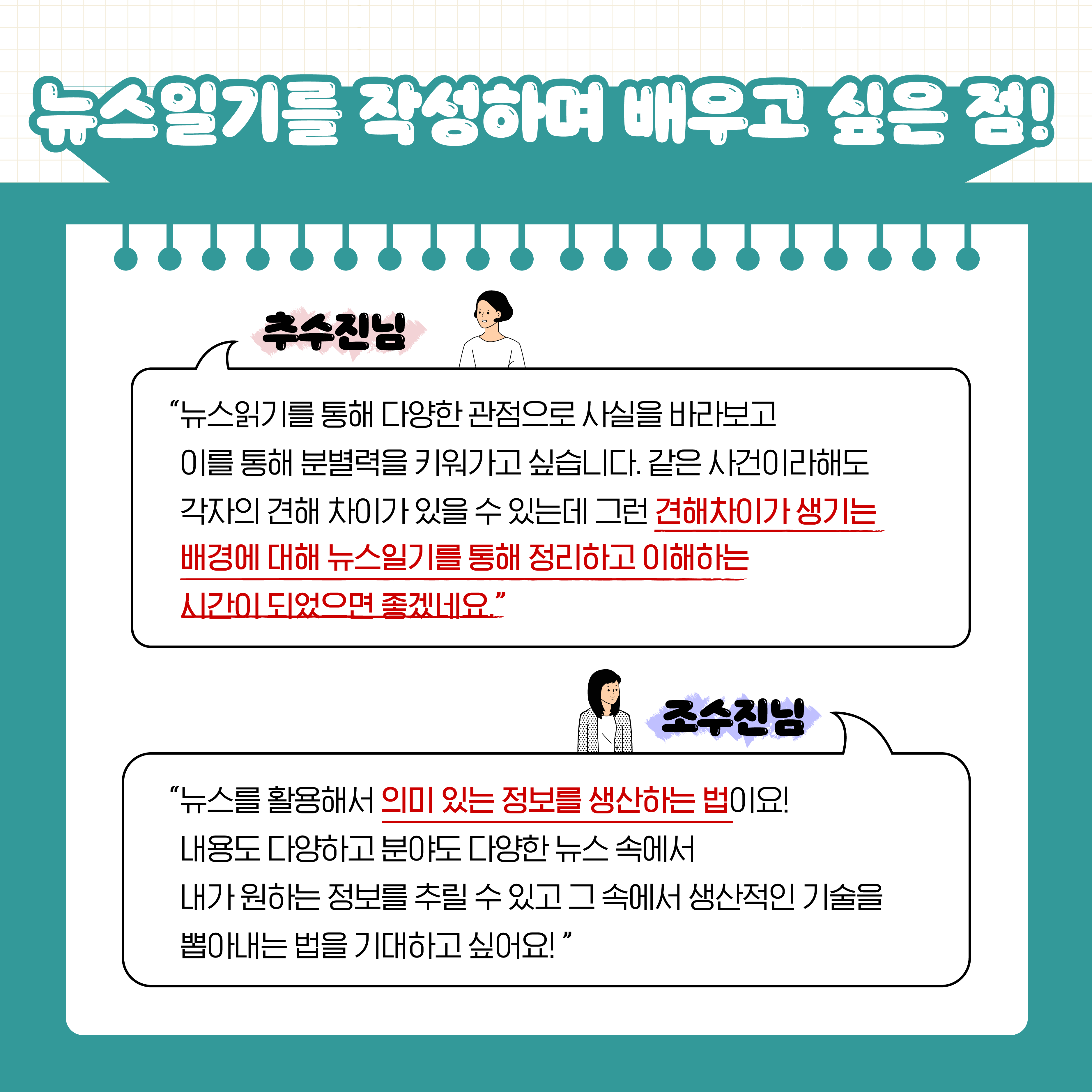 그 과정을 연습하다 보면 다각적으로 뉴스를 바라볼 수 있답니다.