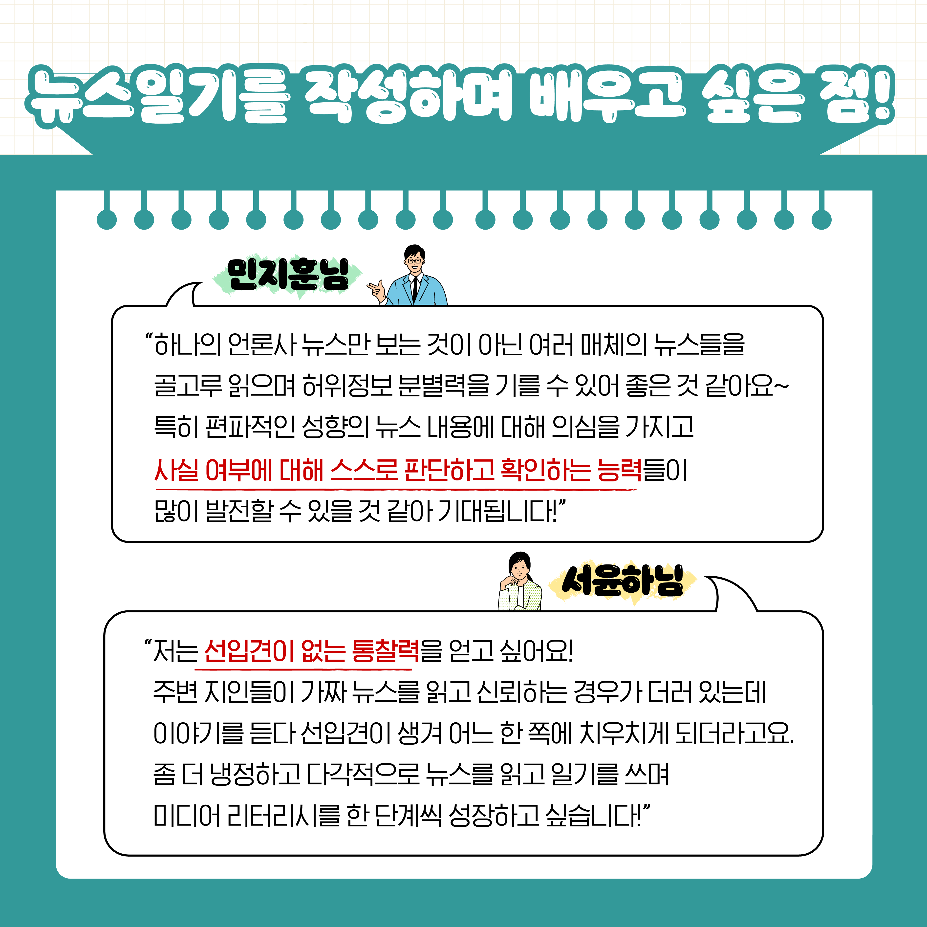 공모전 참가자들이 말하는 뉴스일기를 작성하며 배우고 싶은 점!