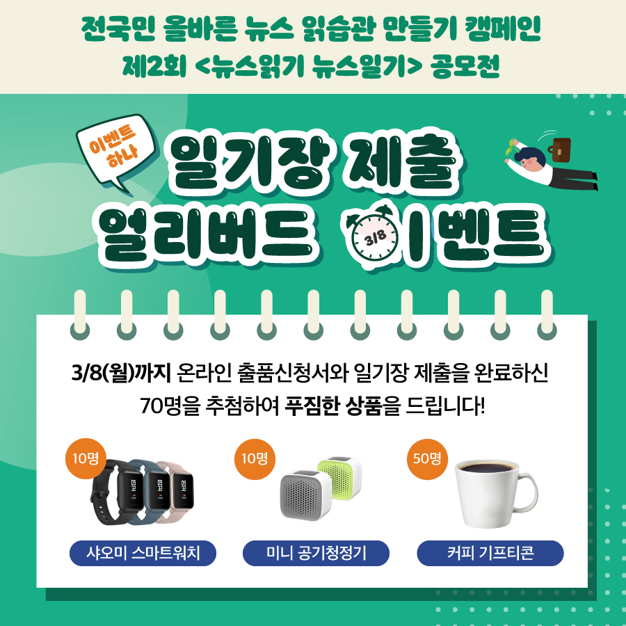 열정이 가득 담긴 뉴스일기장을 제출하고 푸짐한 경품도 받아가세요 :)