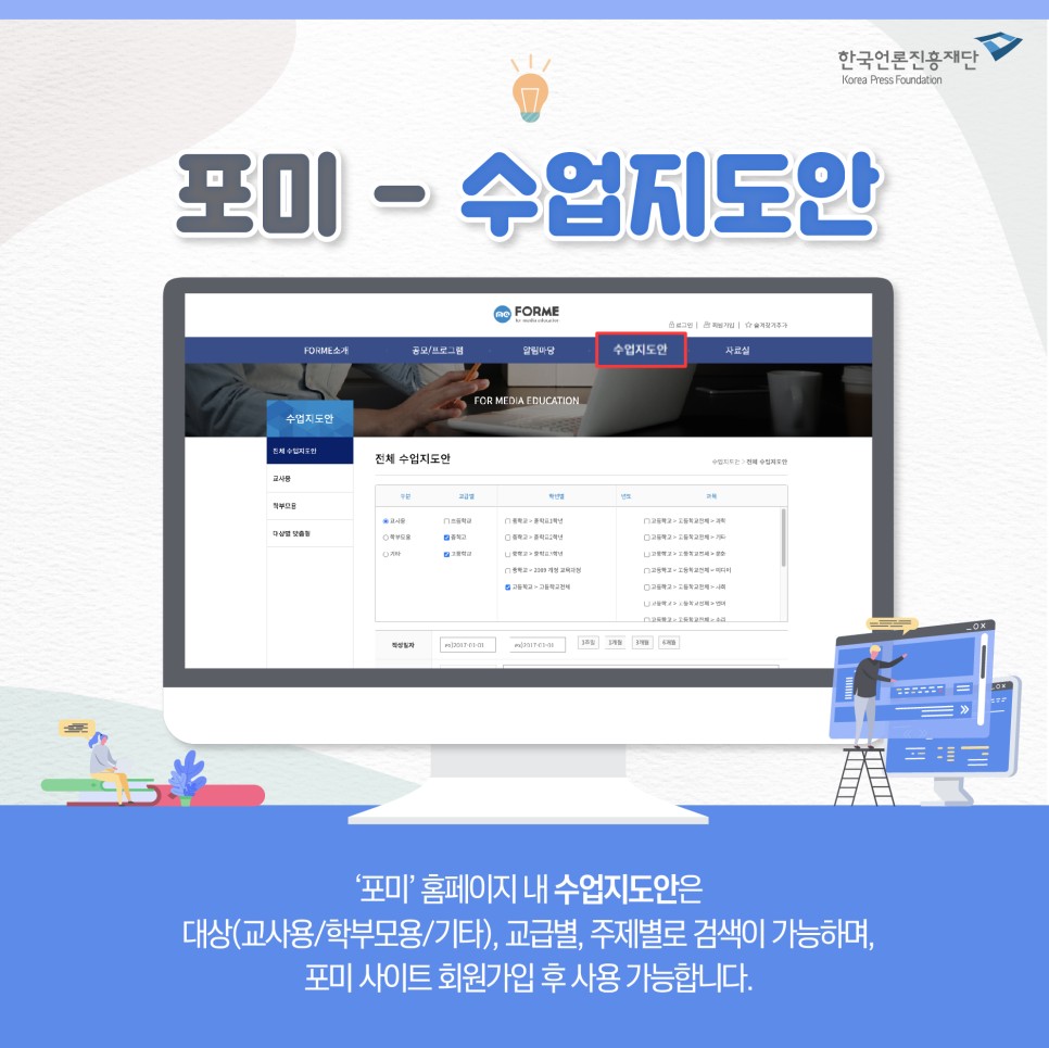 교재 및 자료, 수업 지도안 등을 제공하는 미디어교육 전문 포털입니다.