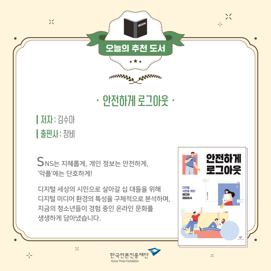 오늘은 책 ‘안전하게 로그아웃 l 저자 김수아 l 출판 창비’를 소개하겠습니다.