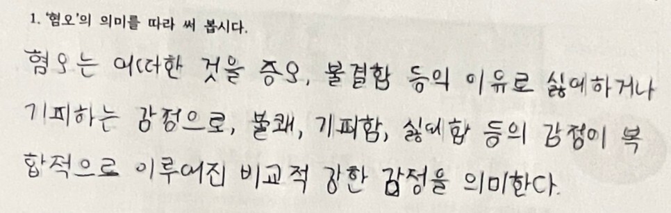 먼저, 혐오의 뜻을 정확하게 알아보기로 했다. 아이들의 답변은 막연했다. 네이버 어학사전 검색을 통해 정확한 뜻을 찾아 적고 다시 한번 읽어보았다. 그리고 준비한 뉴스 기사를 읽기 시작했다. 두 개의 뉴스를 다 읽은 아이들은 우리나라에서 다문화 2세에게 혐오 발언을 해 인권위가 고소를 했다는 기사보다, 미국에서 우리나라 교민이 혐오 차별을 당했다는 기사에 더 발끈했다.