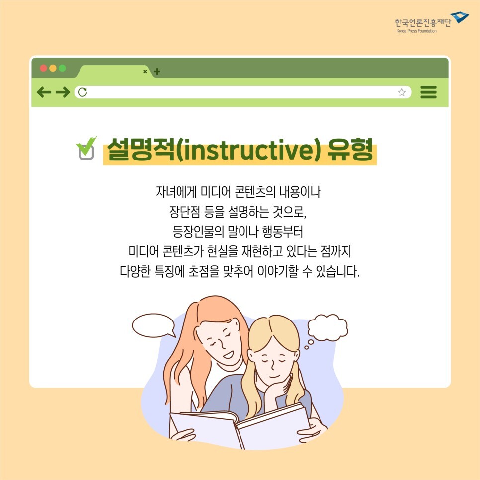자녀에게 미디어 콘텐츠의 내용이나 장단점 등을 설명하는 것으로,