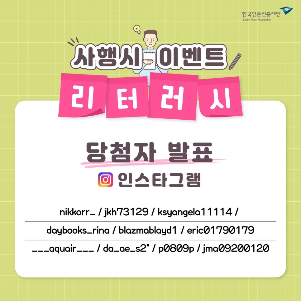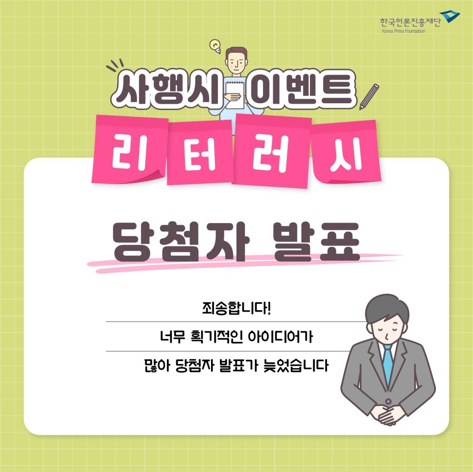 | 미디어 리터러시 사행시 이벤트에 당첨된 사행시를 소개합니다! (0) | 2021.11.11 |