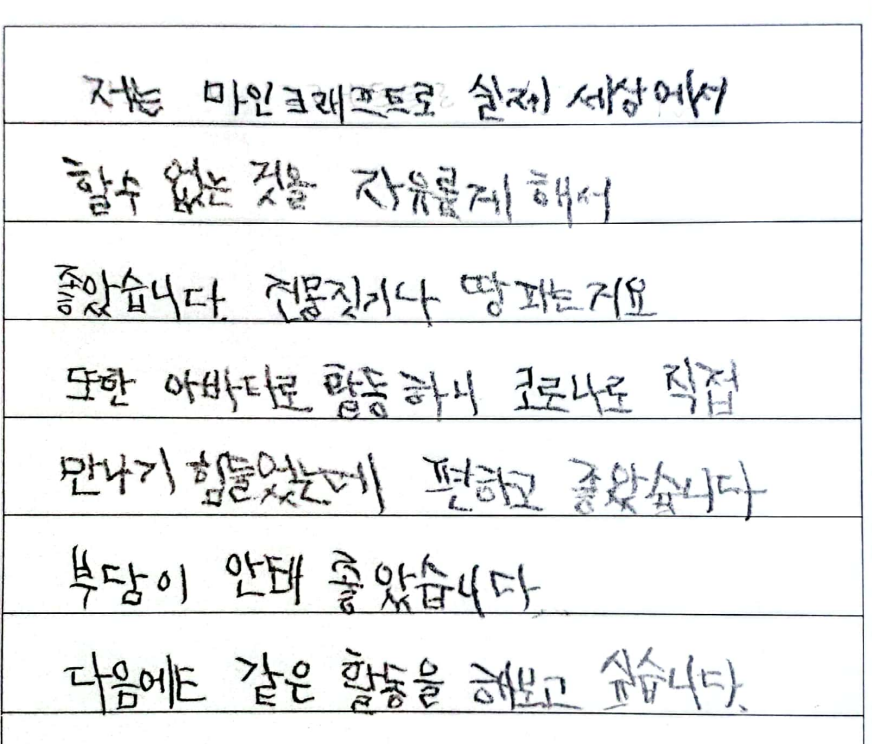 우리나라에서 마인크래프트 게임을 모르는 초등학생이 있을까? 마인크래프트는 대부분의 학생이 직접 해 보았거나 적어도 친구들이 하는 모습을 보거나 들은 적은 있을 것이다. 원래 마인크래프트는 게임으로 개발됐지만 교육적 가치를 인정받아 현재 영어, 미술, 코딩 등 다양한 수업에 활용되고 있다.