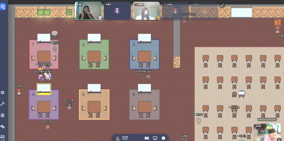 게더타운(Gather.town)3)은 학급의 블랜디드 수업이나 각종 대회 및 행사에서 많이 활용하고 있는 메타버스 플랫폼이다. 2D를 기반으로 하고 있는데 메타버스 공간을 특정 목적에 맞게 직접 제작하는 것이 비교적 간편할 뿐만 아니라, 아바타끼리 만나서 화상으로 대화도 나눌 수 있다. 이 플랫폼을 활용해 6학년 2학기 국어 1단원 ‘작품 속 인물과 나’ 단원을 재구성해 보았다.