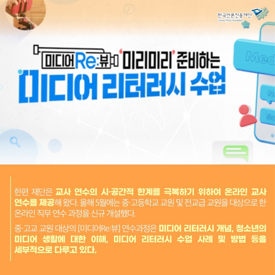 중·고교 교원 대상의 [미디어Re:뷰] 연수과정은