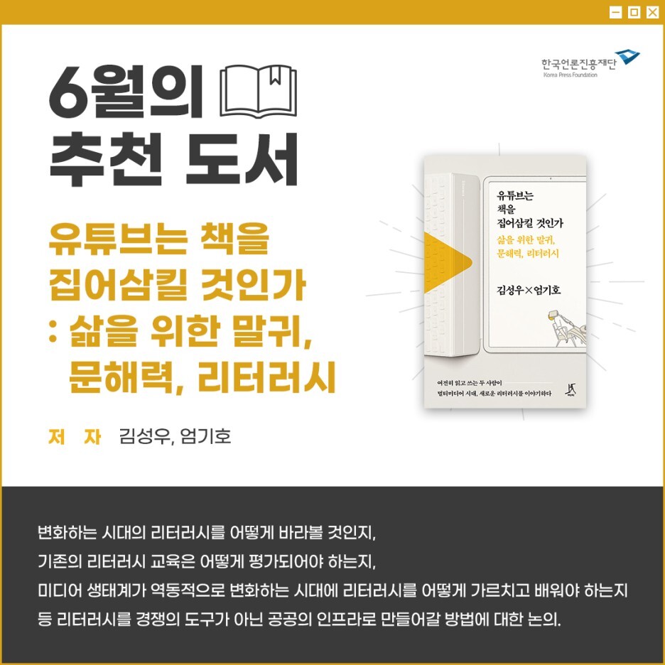 6월의 추천 도서 – 유튜브는 책을 집어삼킬 것인가
