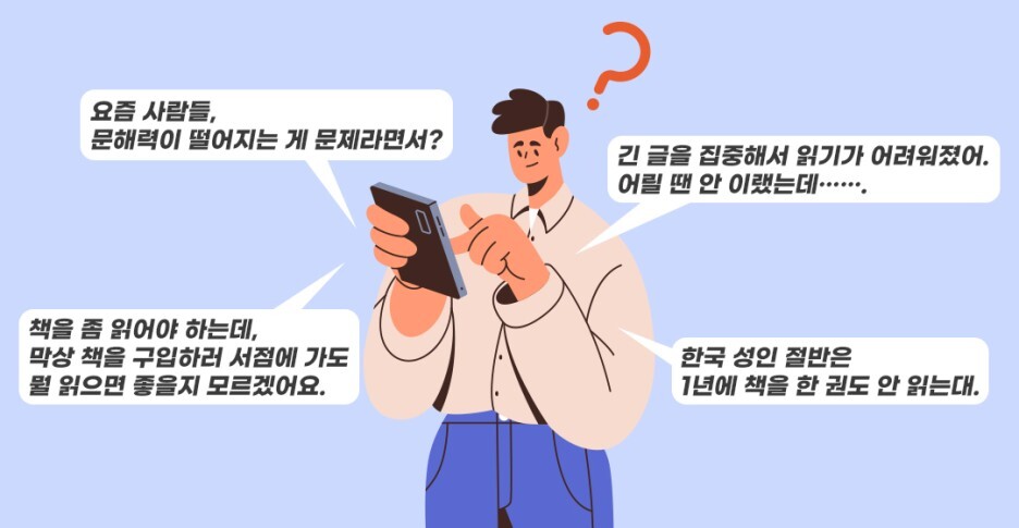 최근 각종 뉴스와 신문기사를 통해 우리나라 국민들의 독서량과 문해력에 대한