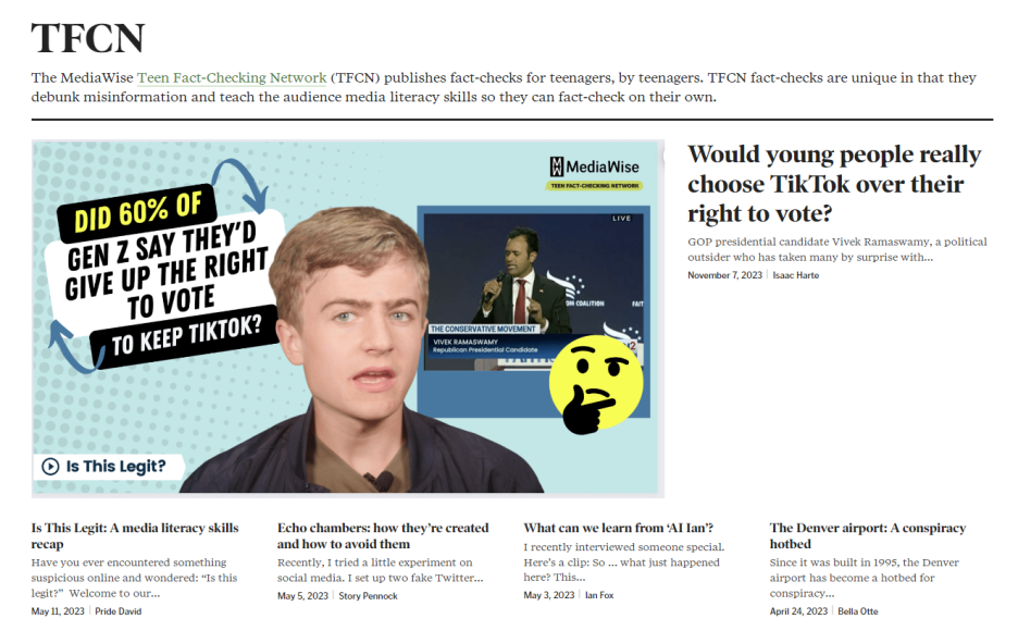 학생용 온라인 뉴스룸인 ‘10대를 위한 팩트체크 네트워크(Teen Fact-Checking Network, 이하 TFCN)’를 만든 것도 같은 맥락이다. 2020년 미디어와이즈가 미국 학생들을 대상으로 팩트체크 교육을 위해 시작한 TFCN은 이젠 해외로 확장했다. 현재 해외 파트너 국가와 기관은 브라질의 팩트체크 플랫폼 ‘아젠시아 루파(Agência Lupa)’, 독일 통신사 <dpa>, 그리고 최근에 동참한 인도의 팩트체크 기관 ‘붐 라이브 인디아(BOOM Live India)’ 등이다.
