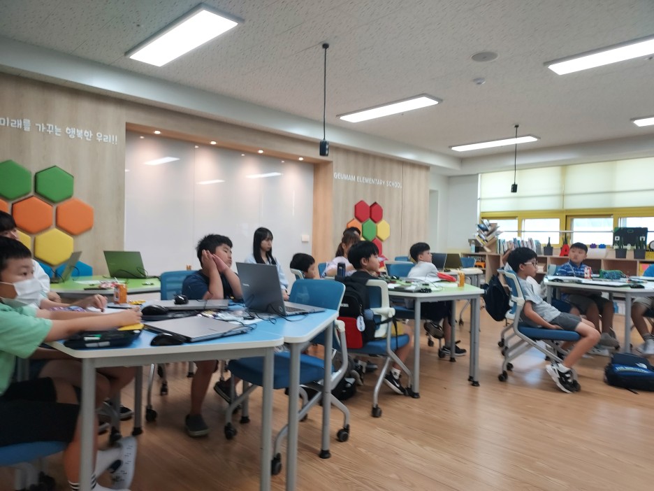 수업 현장에는 수업을 진행할 교수와 금암초 교사뿐 아니라 한신대 학생을 멘토로 배치했다. 네트워크 활용에 어려움이 있을 때 교수, 교사, 멘토의 휴대폰 데이터를 활용했으며 특히 멘토는 AI 사용을 어려워하는 학생들을 도와주었다. 더 많은 학생에게 기회를 주고자 1기와 2기, 서로 다른 학생을 모집하여 방과후에 수업을 진행했다. 그 결과 1기 12명, 2기 11명으로 총 23명이 참여했다.