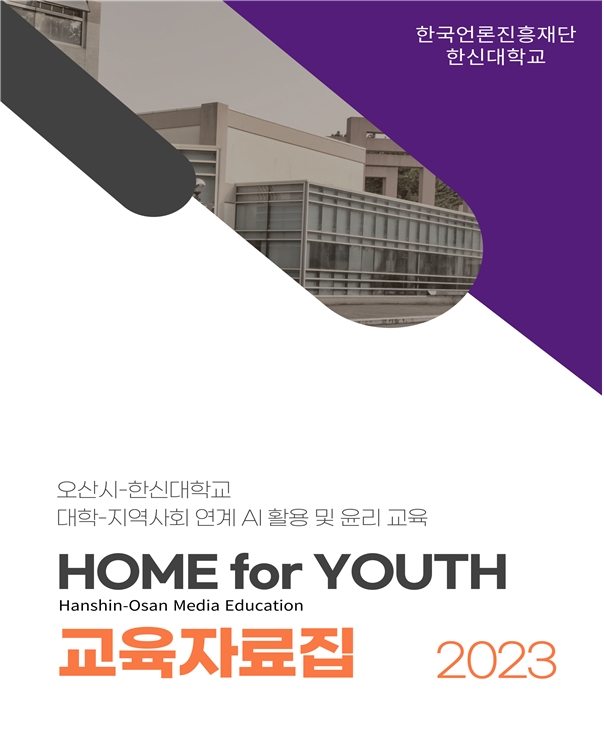 이 문제를 해결하기 위한 하나의 방법은 대학의 관련 전문가가 교사와 협력하여 AI 윤리와 관련된 리터러시 교육 프로그램을 개발하고 학교 현장에서 학생들을 교육하는 것이다. 이를 위해 현재 한신대에서 근무하고 있는 필자들은 대학이 위치한 지역인 오산 근교 초중고에서 AI 리터러시 및 윤리를 내용으로 하는 대학-지역사회 연계 미디어 리터러시 프로그램 ‘홈 포 유스’를 진행했다. 여기서 홈(HOME)은 ‘한신대-오산 지역의 미디어교육’을 영어로 표기했을 때 첫머리를 따서 만든 조합이다. 더불어 학생들이 집(home)에서처럼 편안하게 AI의 윤리적 활용을 자연스럽게 접하도록 하자는 취지도 담겨 있다.
