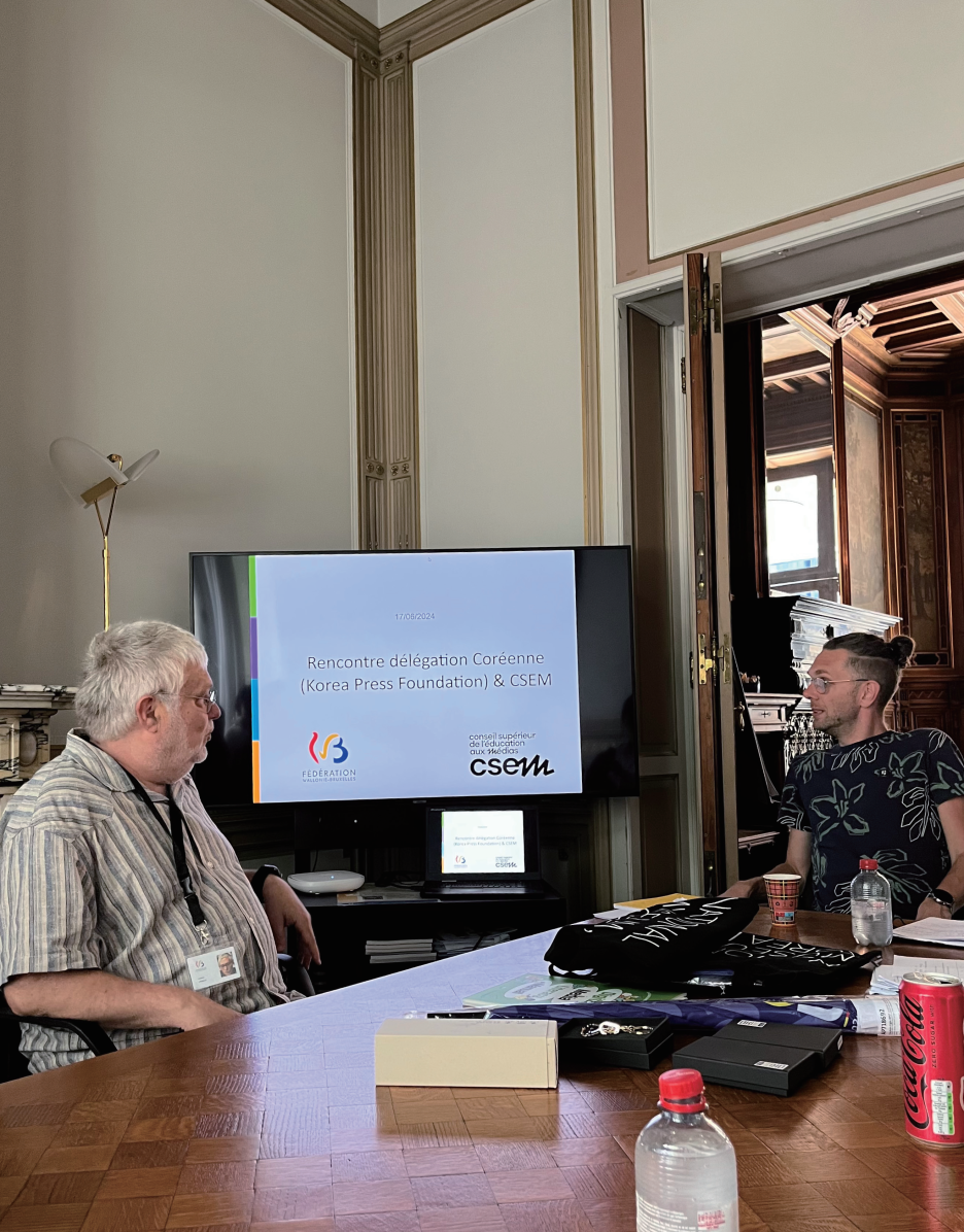 3일 차에는 미디어교육최고위원회(CSEM)에 방문해 벨기에 미디어교육의 간략한 역사와 현황, 장애물과 이에 대한 대안, 지향점 등에 대해 다양한 논의를 나누었다. 이날은 CSEM 소속 미디어교육 총괄 디렉터이자 벨기에 왈로니브뤼셀연방 미디어교육 석사과정 신설에 주요 역할을 한 파트릭 베르니에(Patrick Verniers), 전직 프랑스어 교사 출신인 세바스티앵 그로(Sébastien Grau), 그리고 역시 중학교 교사 출신인 다미앵 아엔쿠르(Damien Haenecour)와 함께 하였다.